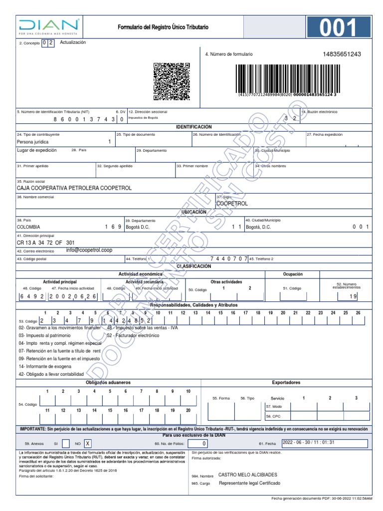 IMPORTANTE: Sin perjuicio de las actualizaciones a que haya lugar, la inscripción en el Registro Único Tributario -RUT-, tendrá vigencia indefinida y en consecuencia no se exigirá su renovación