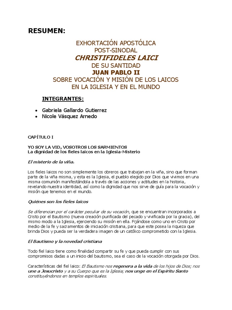 apostólicos que afectan a cada uno de los fieles laicos. A los fieles laicos, y también a los