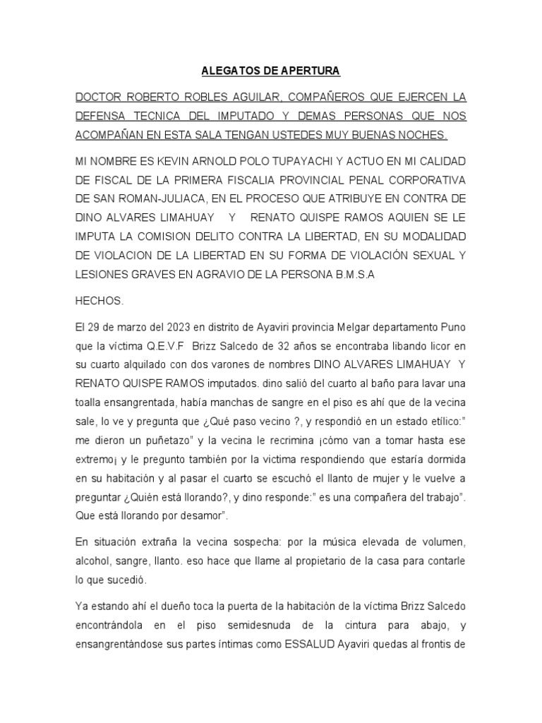 RENATO QUISPE RAMOS imputados. dino salió del cuarto al baño para lavar una