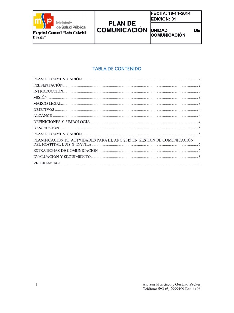 PLAN DE COMUNICACIÓN................................................................................................................ 2