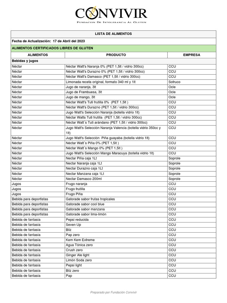 ALIMENTOS CERTIFICADOS LIBRES DE GLUTEN