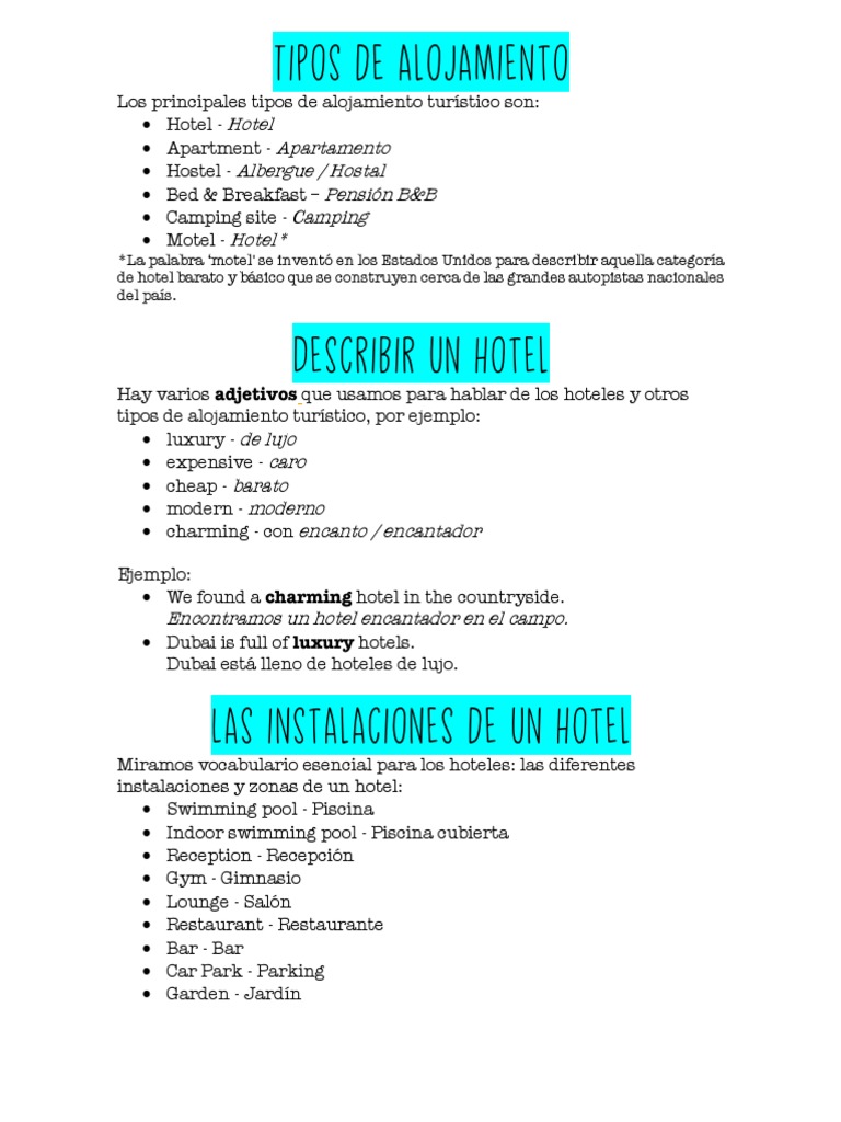Hay varios adjetivos que usamos para hablar de los hoteles y otros
