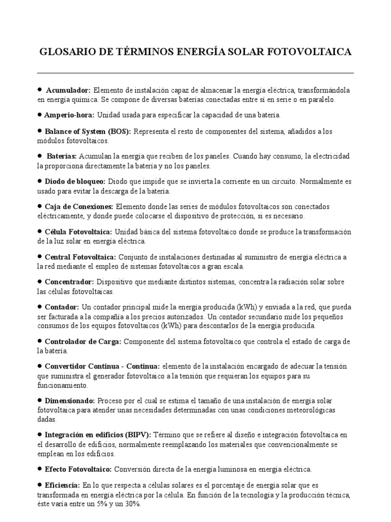 GLOSARIO DE TRMINOS ENERGA SOLAR FOTOVOLTAICA