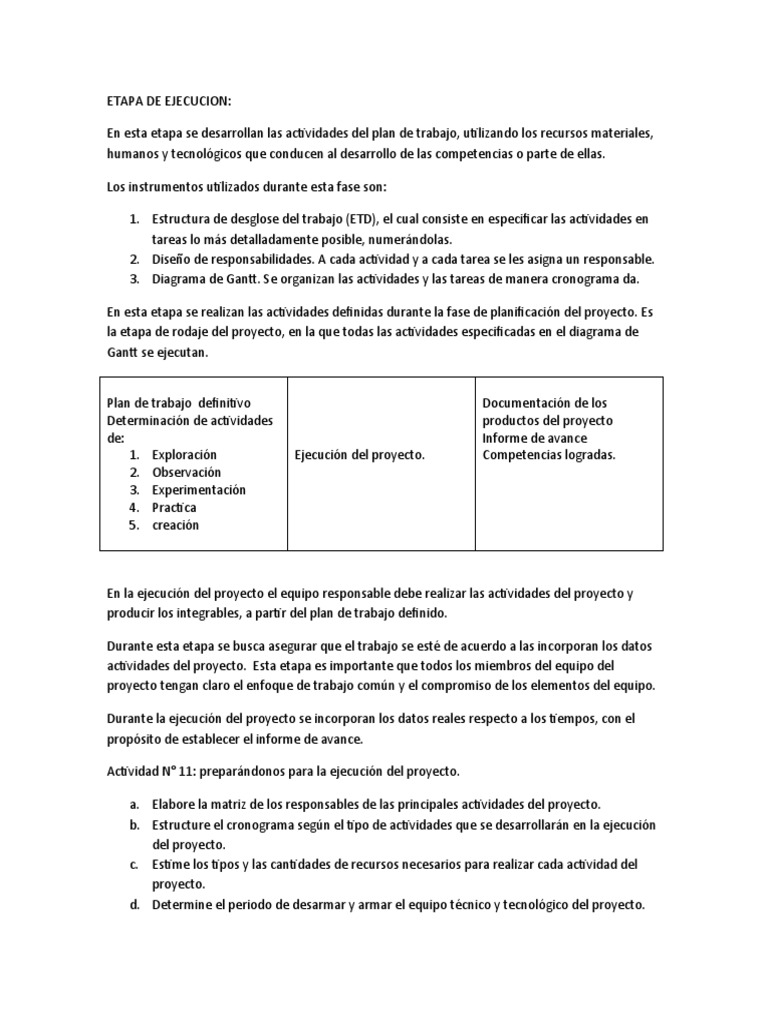 Actividad N° 11: preparándonos para la ejecución del proyecto.