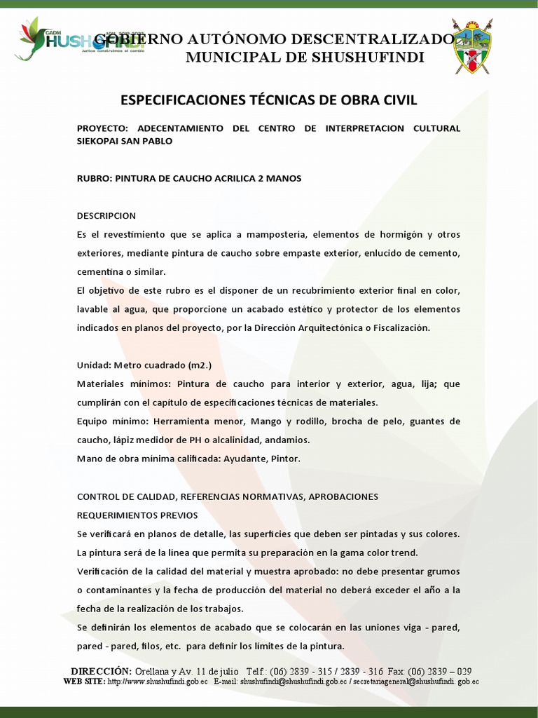 Especificaciones para Pintura de Caucho