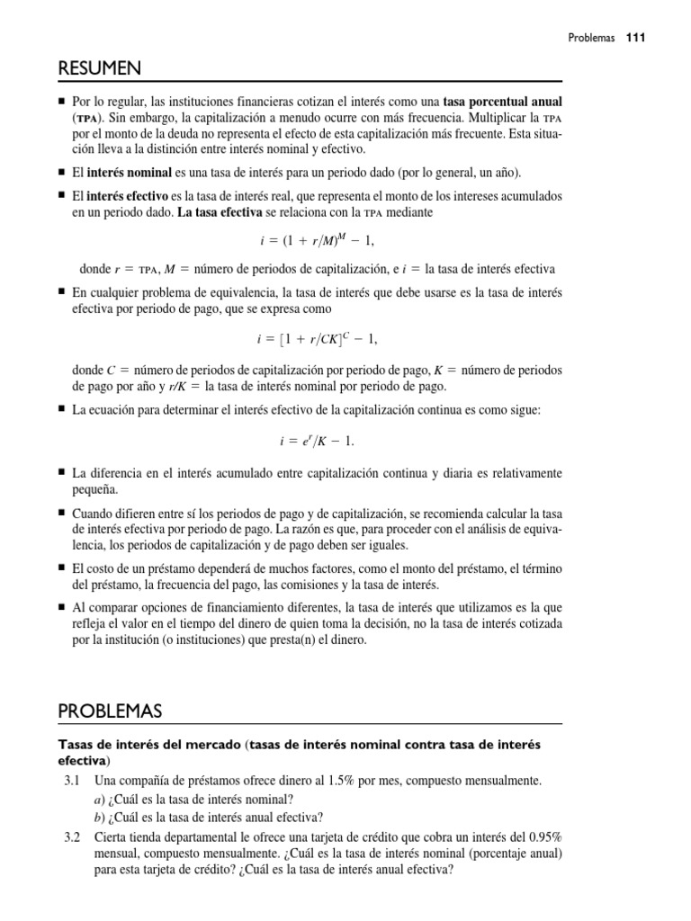 3.12 ¿Cuál es la tasa de interés efectiva mensual si la tasa de interés es del 6% com-