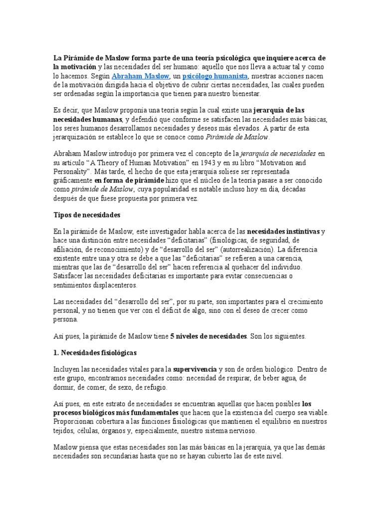 Es decir, que Maslow proponía una teoría según la cual existe una jerarquía de las