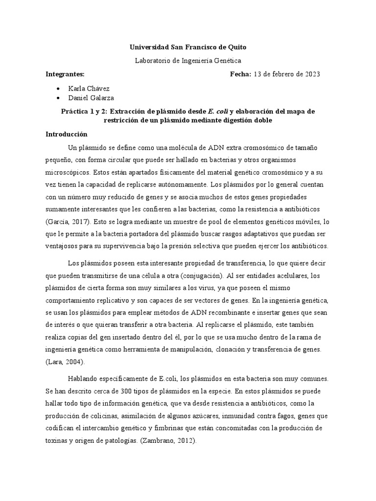 Práctica 1 y 2: Extracción de plásmido desde E. coli y elaboración del mapa de