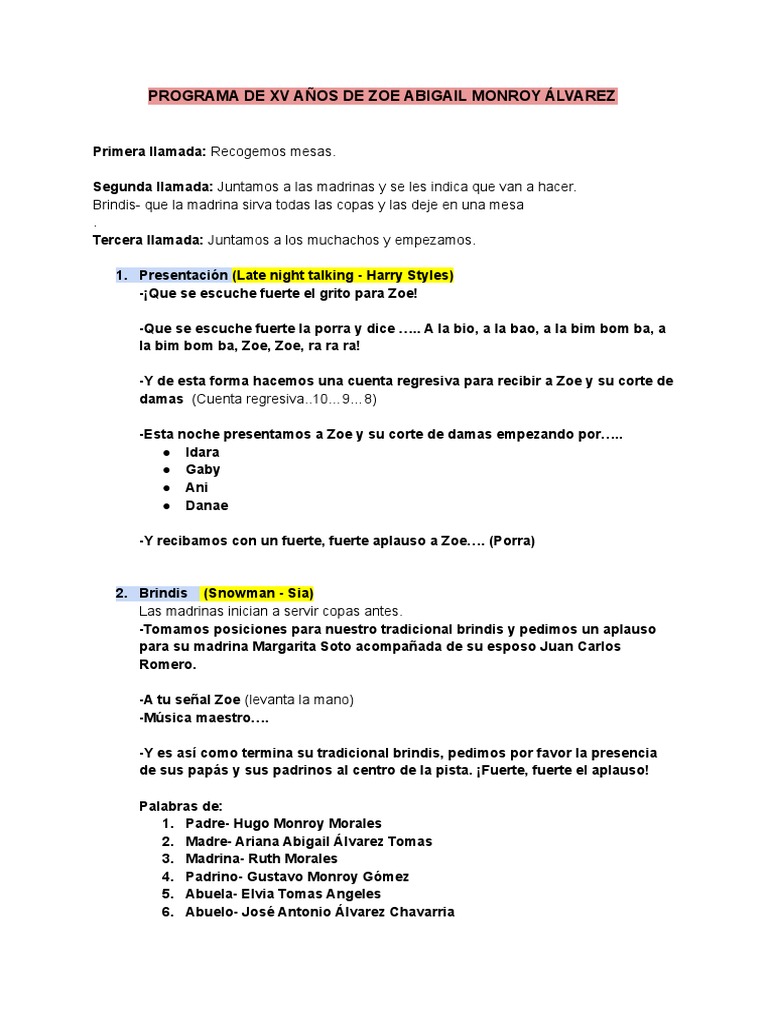 PROGRAMA DE XV AÑOS DE ZOE ABIGAIL MONROY ÁLVAREZ
