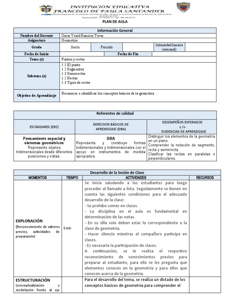 durante la actividad con el poseen, diferenciar los conceptos de segmento, recta y