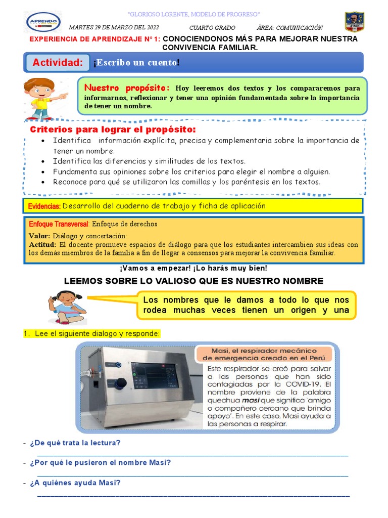 MARTES 29 DE MARZO DEL 2022 CUARTO GRADO ÁREA: COMUNICACIÓN