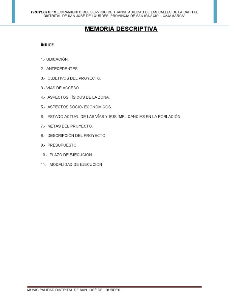 PROYECTO: "MEJORAMIENTO DEL SERVICIO DE TRANSITABILIDAD DE LAS CALLES DE LA CAPITAL