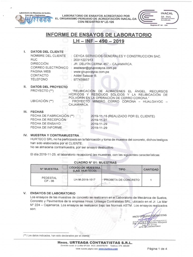 HURTECO SRL no ha participado en la fabricacién y toma de muestra del concreto, dichos testigos