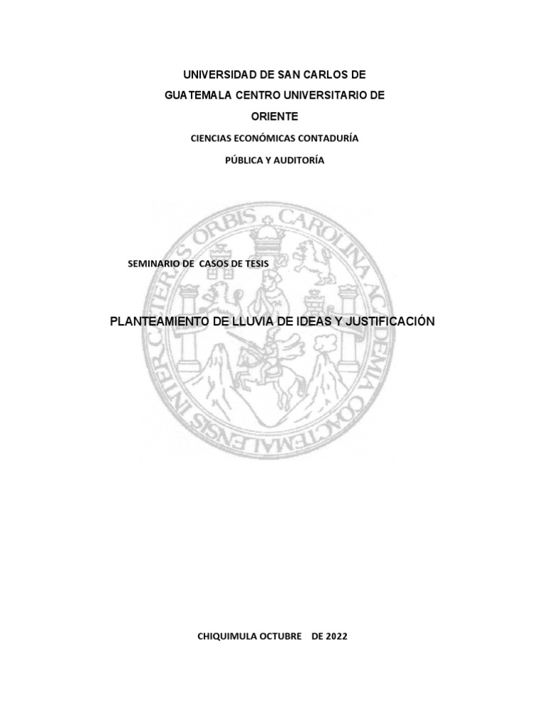 PLANTEAMIENTO DE LLUVIA DE IDEAS Y JUSTIFICACIÓN