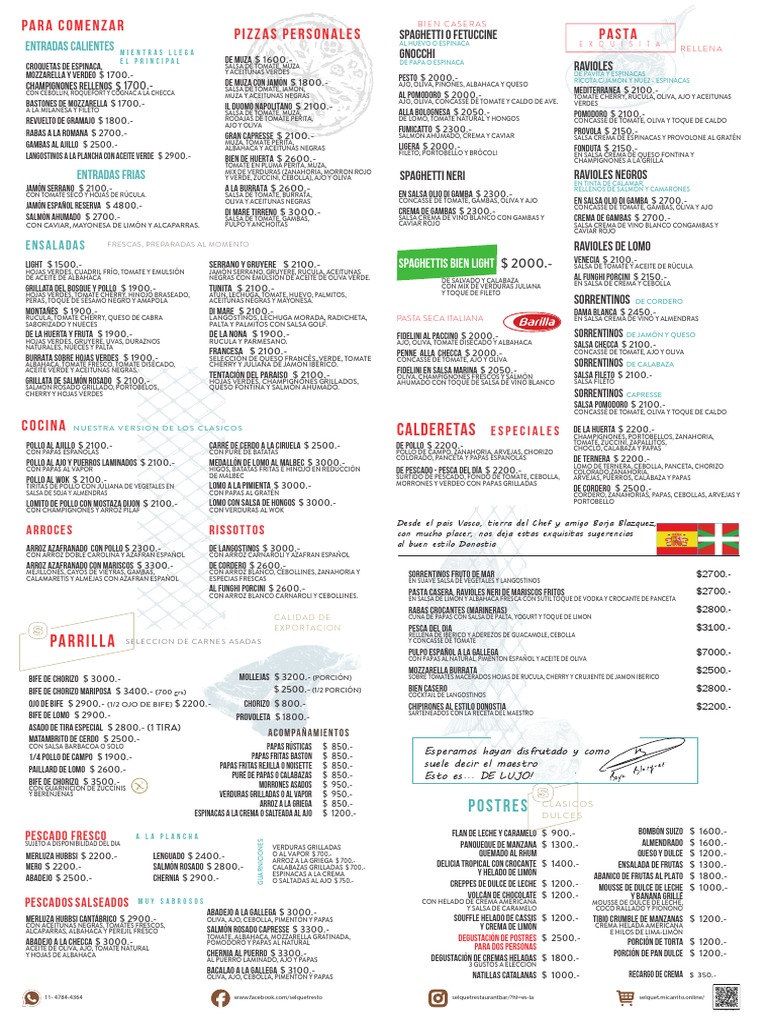 OJO DE BIFE $ 2900.- (1/2 OJO DE BIFE) $ 2200.- CHORIZO $ 800.- CHIPIRONES AL ESTILO DONOSTIA $2200.-