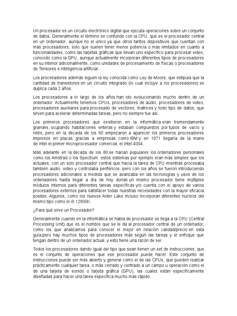 Generalmente cuando en la informática se habla de procesador se llega a la CPU (Central