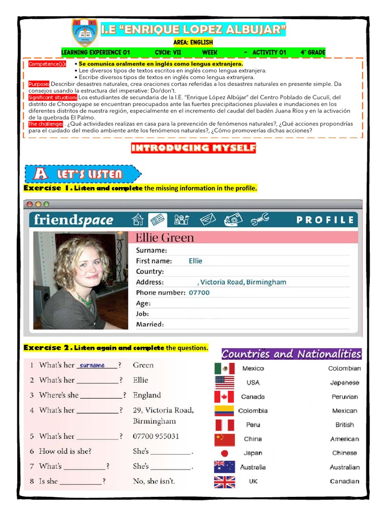 Exercise 1. Listen and complete the missing information in the profile.