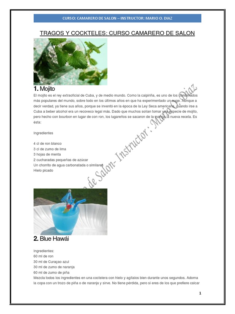 CURSO: CAMARERO DE SALON – INSTRUCTOR: MARIO O. DIAZ
