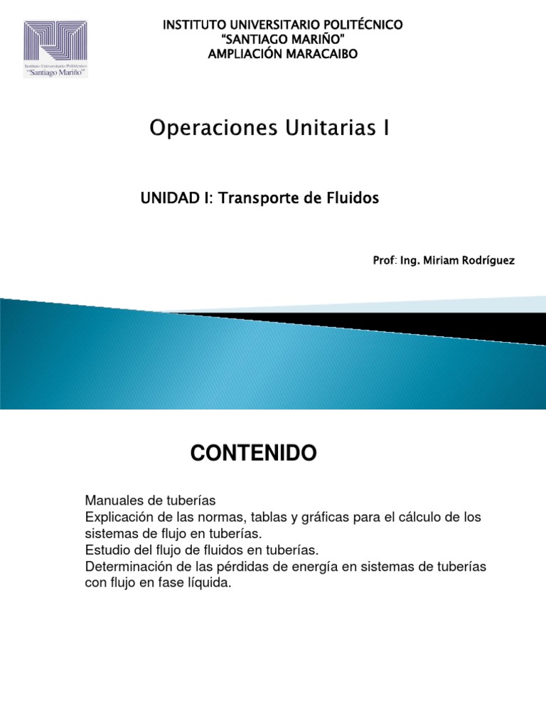 UNIDAD I: Transporte de Fluidos