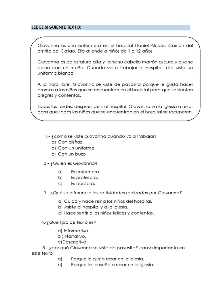 c) Trata de cómo es la enfermera Giovanna.