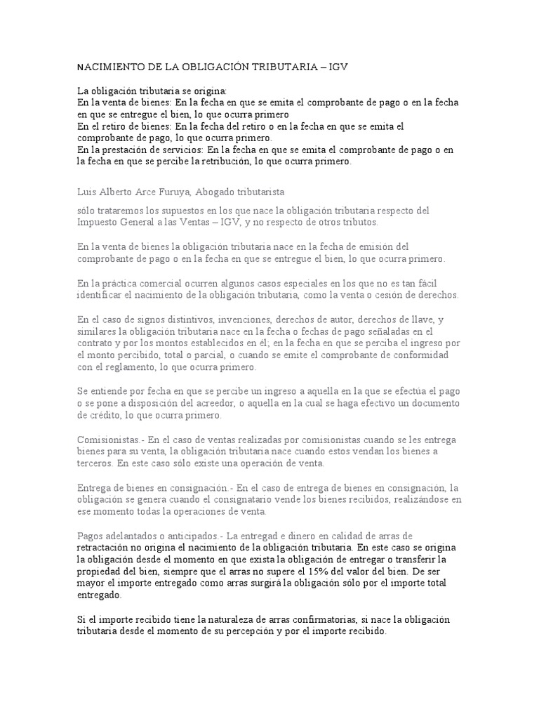 NACIMIENTO DE LA OBLIGACIÓN TRIBUTARIA – IGV
