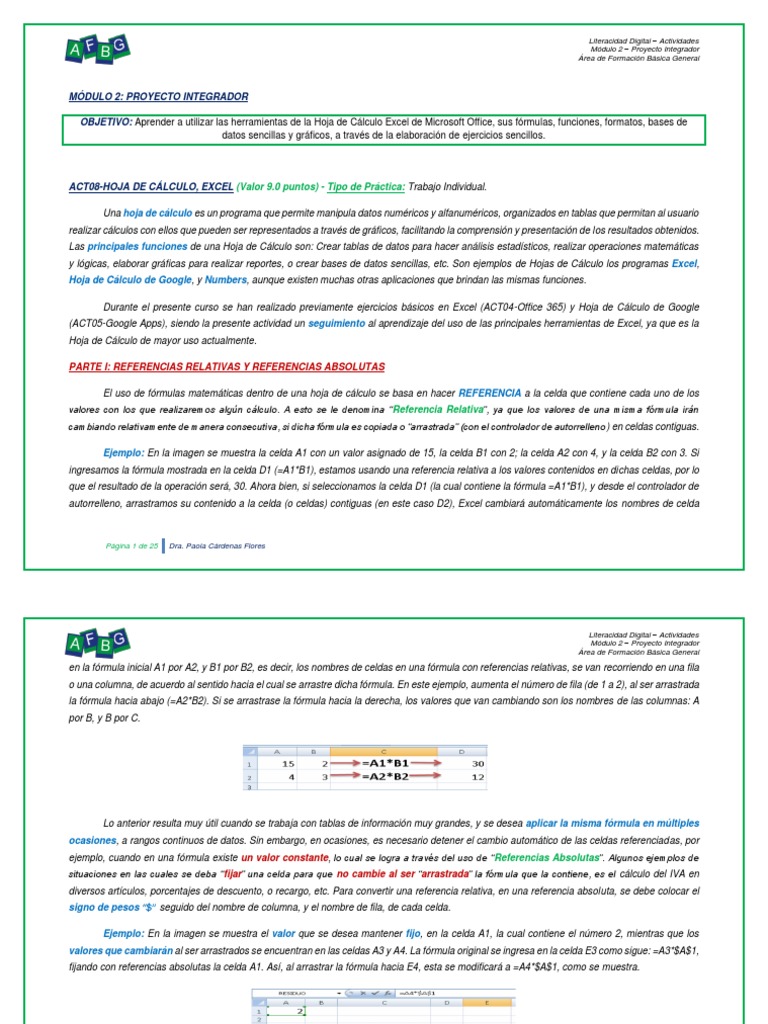 valores con los que realizaremos algún cálculo. A esto se le denomina “Referencia Relativa”, ya que los valores de una misma fórmula irán