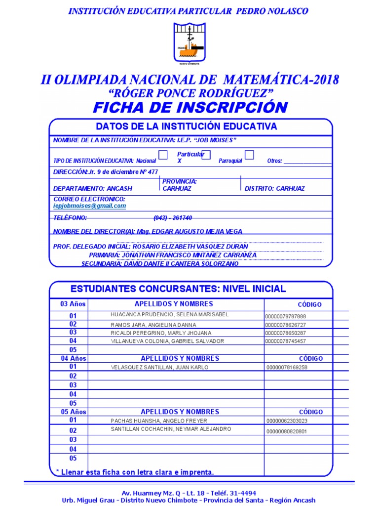 NOMBRE DE LA INSTITUCIÓN EDUCATIVA: I.E.P. “JOB MOISES”