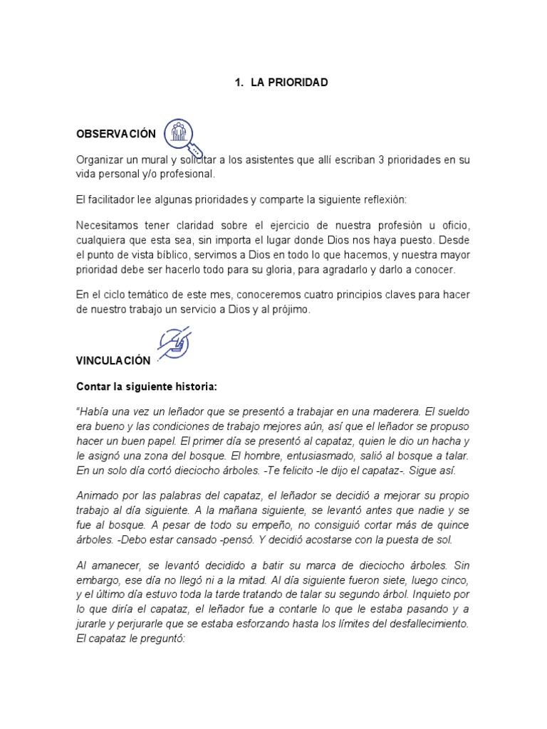 El facilitador lee algunas prioridades y comparte la siguiente reflexión: