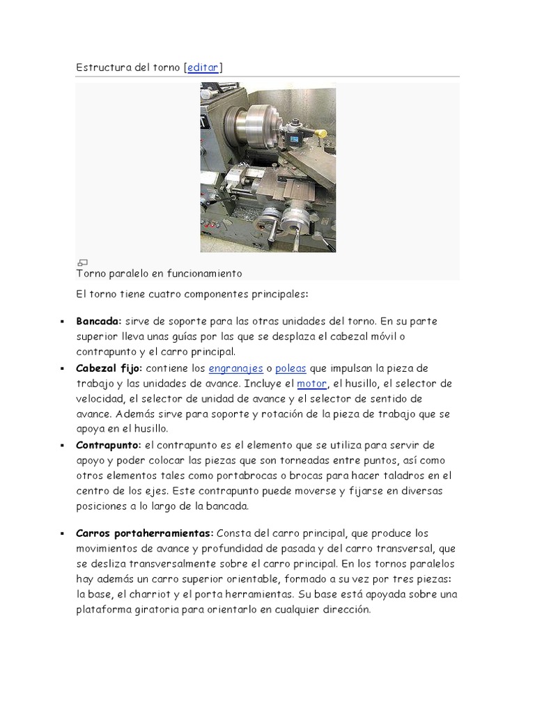 Cabezal fijo: contiene los engranajes o poleas que impulsan la pieza de
