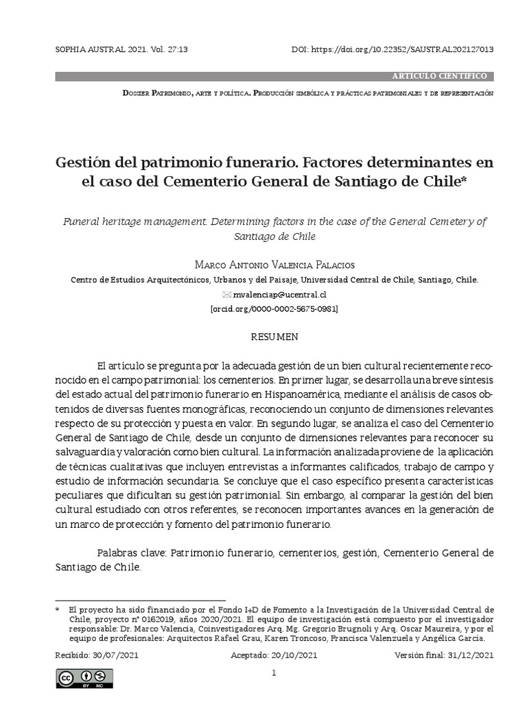 to its protection and enhancement. Secondly, the case of the General Cemetery of Santiago