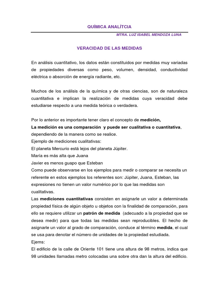 cuantitativa e implican la realización de medidas cuya veracidad debe
