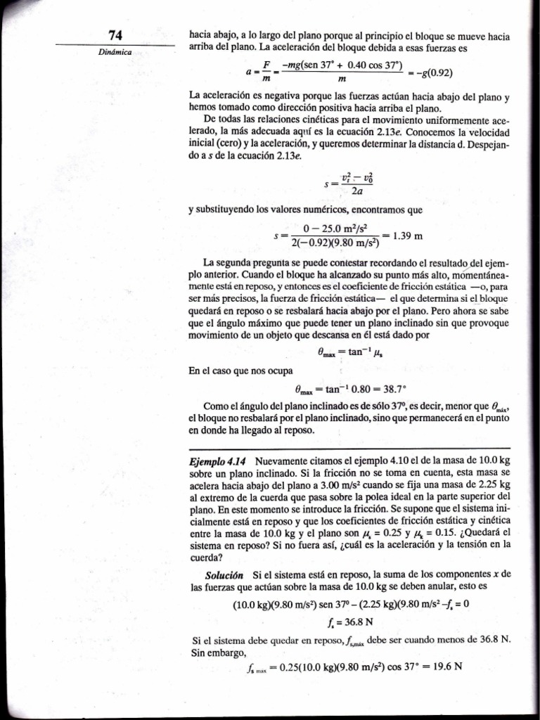 frgura 4.19 resbala hacia abajo del plano a velocidad a) c = Tcos flpn¡. c) a = Icos dm + png.