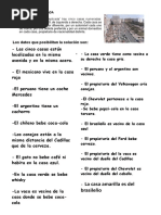 13. La familia que tiene un automovil rojo vive junto a la familia que tiene un automivil verde.