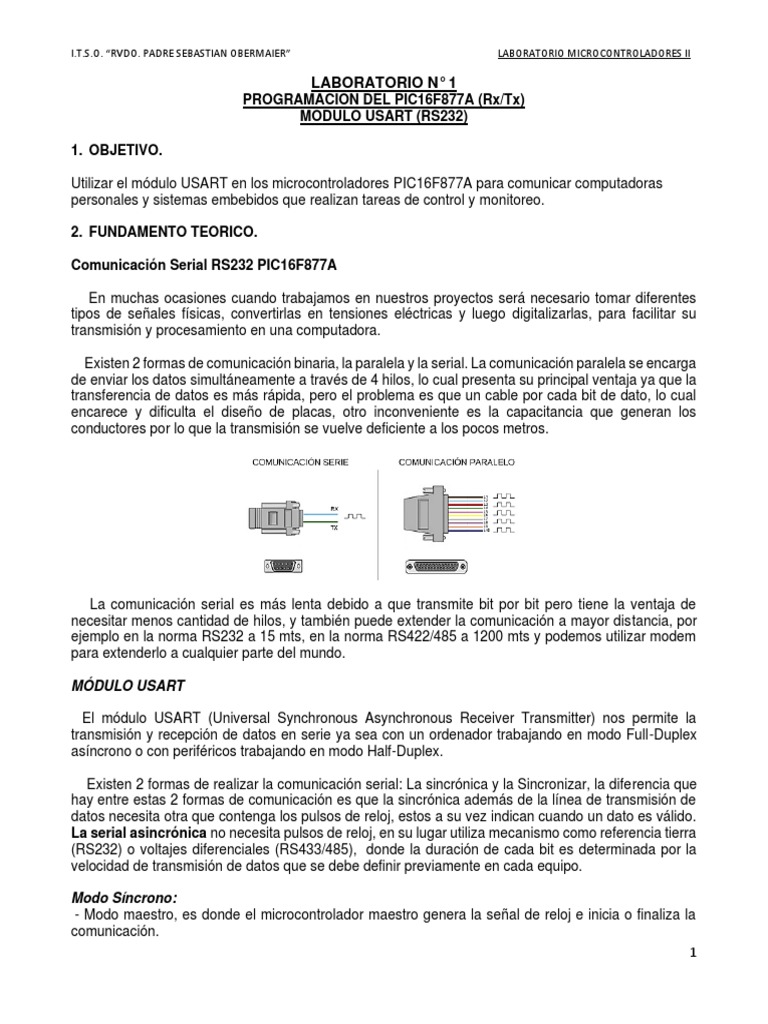 Utilizar el módulo USART en los microcontroladores PIC16F877A para comunicar computadoras