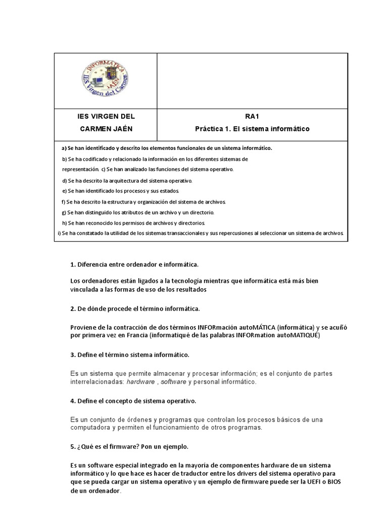 a) Se han identificado y descrito los elementos funcionales de un sistema informático.