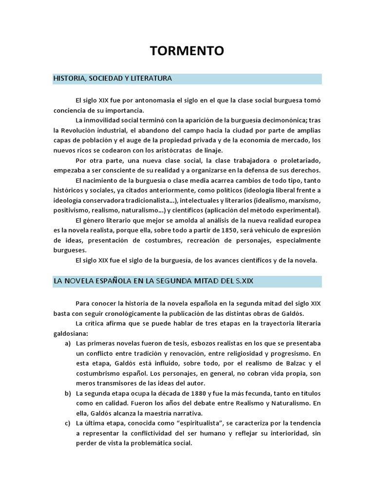 Tormento es una novela de personajes, de sus anhelos y problemas, de sus penas y