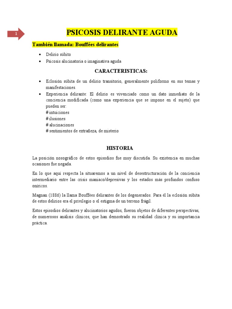10 Las psicosis delirantes agudas constituyen DELIRIOS (delirium) o