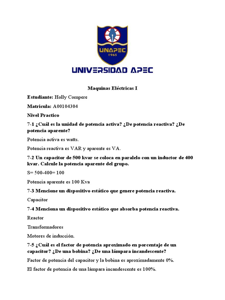 7-1 ¿Cuál es la unidad de potencia activa? ¿De potencia reactiva? ¿De