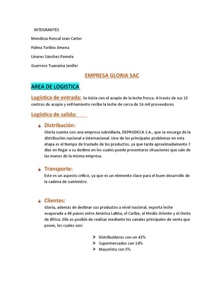 Gloria cuenta con una empresa subsidiaria, DEPRODECA S.A., que se encarga de la