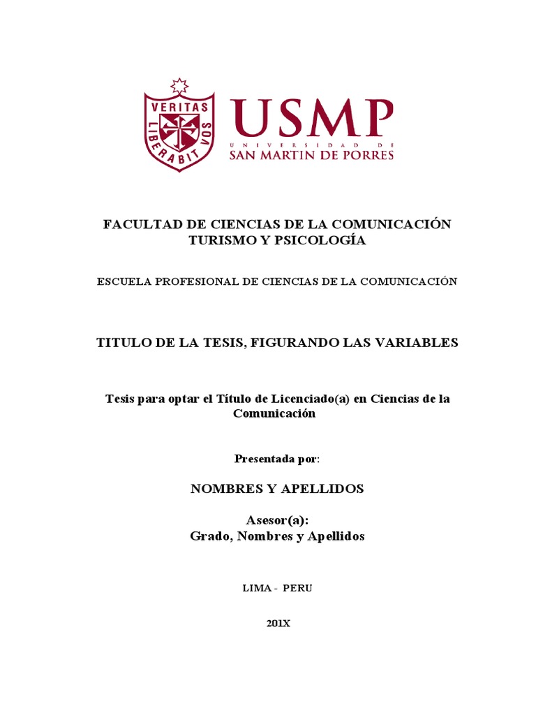 TITULO DE LA TESIS, FIGURANDO LAS VARIABLES