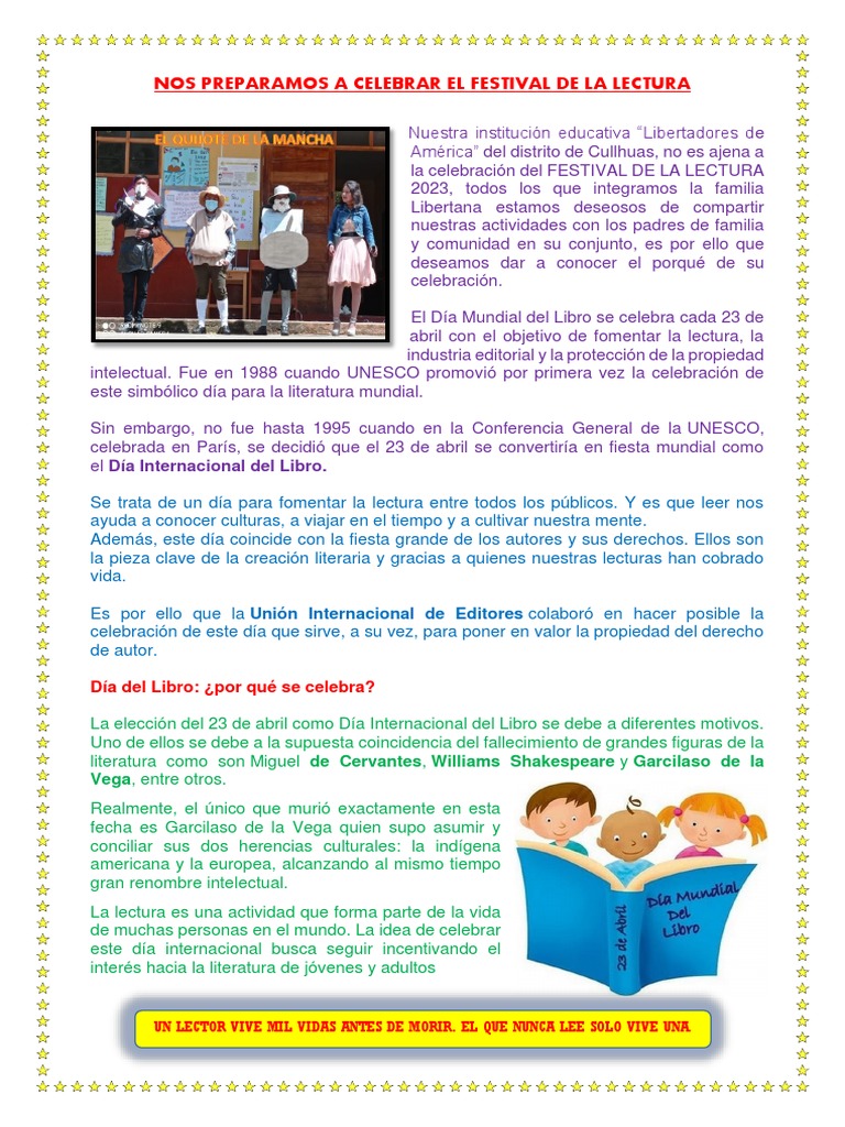 NOS PREPARAMOS A CELEBRAR EL FESTIVAL DE LA LECTURA