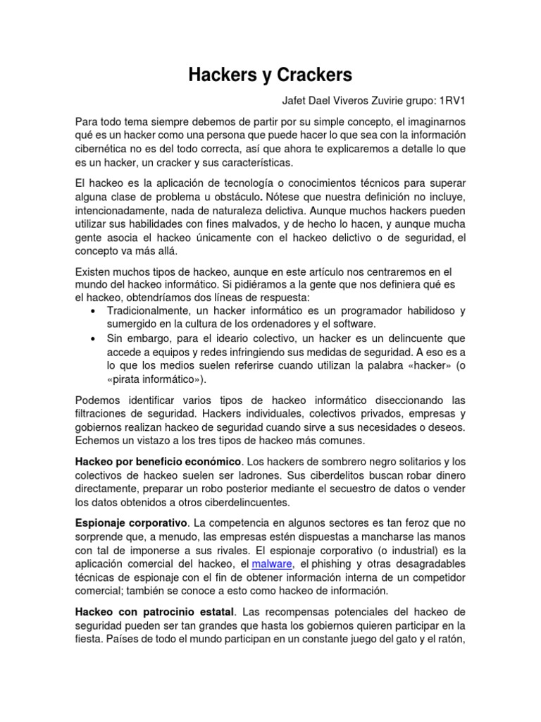 es un hacker, un cracker y sus características.