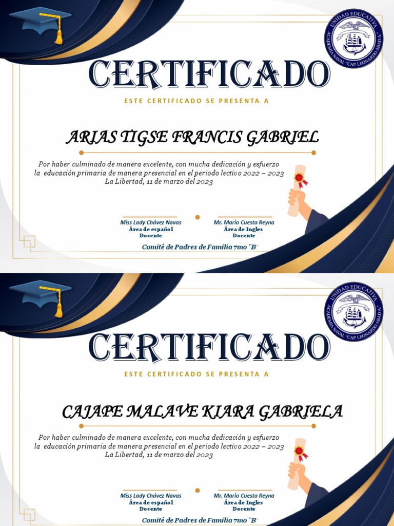 Por haber culminado de manera excelente, con mucha dedicación y esfuerzo