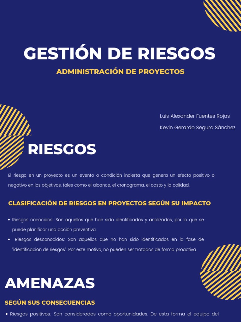 Riesgos negativos: Son considerados como amenazas para el proyecto. En este caso, el