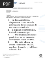 Para cada clase recuerde implementar todos los métodos setter y getter necesarios para los