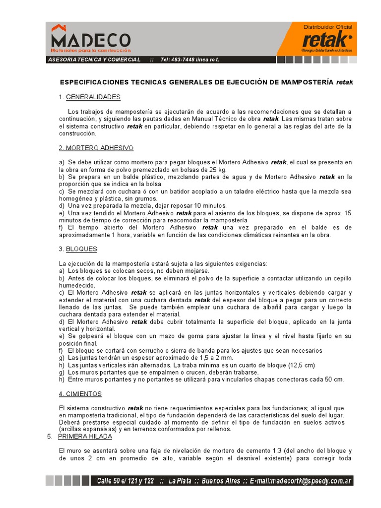 ESPECIFICACIONES TECNICAS GENERALES DE EJECUCIÓN DE MAMPOSTERÍA retak