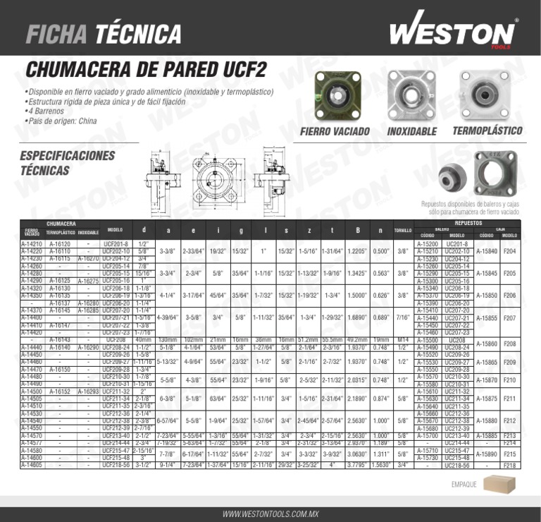 A-14220 A-16110 - UCF202-10 5/8” 3-3/8” 2-33/64” 19/32” 15/32” 1” 15/32” 1-5/16” 1-31/64” 1.2205” 0.500” 3/8” A-15210 UC202-10 A-15840 F204