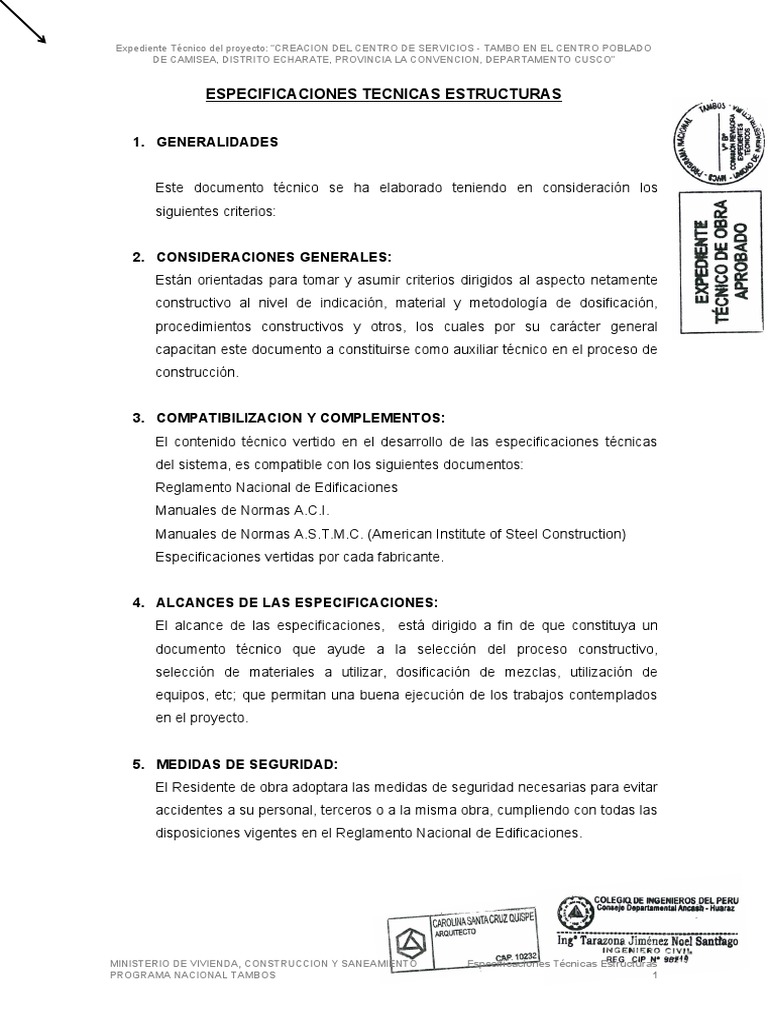 Expediente Técnico del proyecto: “CREACION DEL CENTRO DE SERVICIOS - TAMBO EN EL CENTRO POBLADO