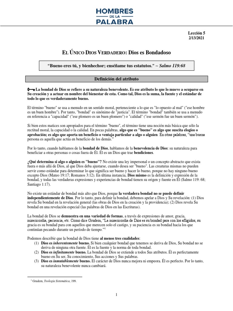• Defina con sus propias palabras el atributo de la bondad de Dios.