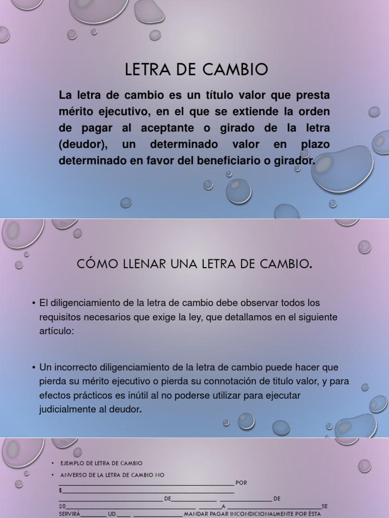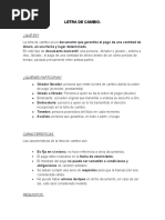 CARACTERÍSTICAS DE UNA LETRA DE CAMBIO